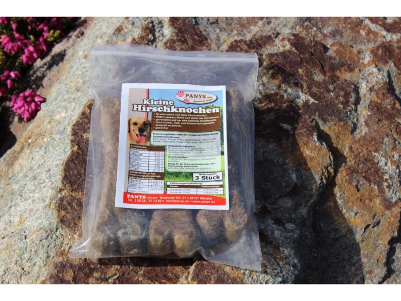 PANYS kleine Hirschknochen gibt es im praktischen wieder erschließbaren Beutel. Drei kleine Hirschknochen pro Verpackungseinheit.